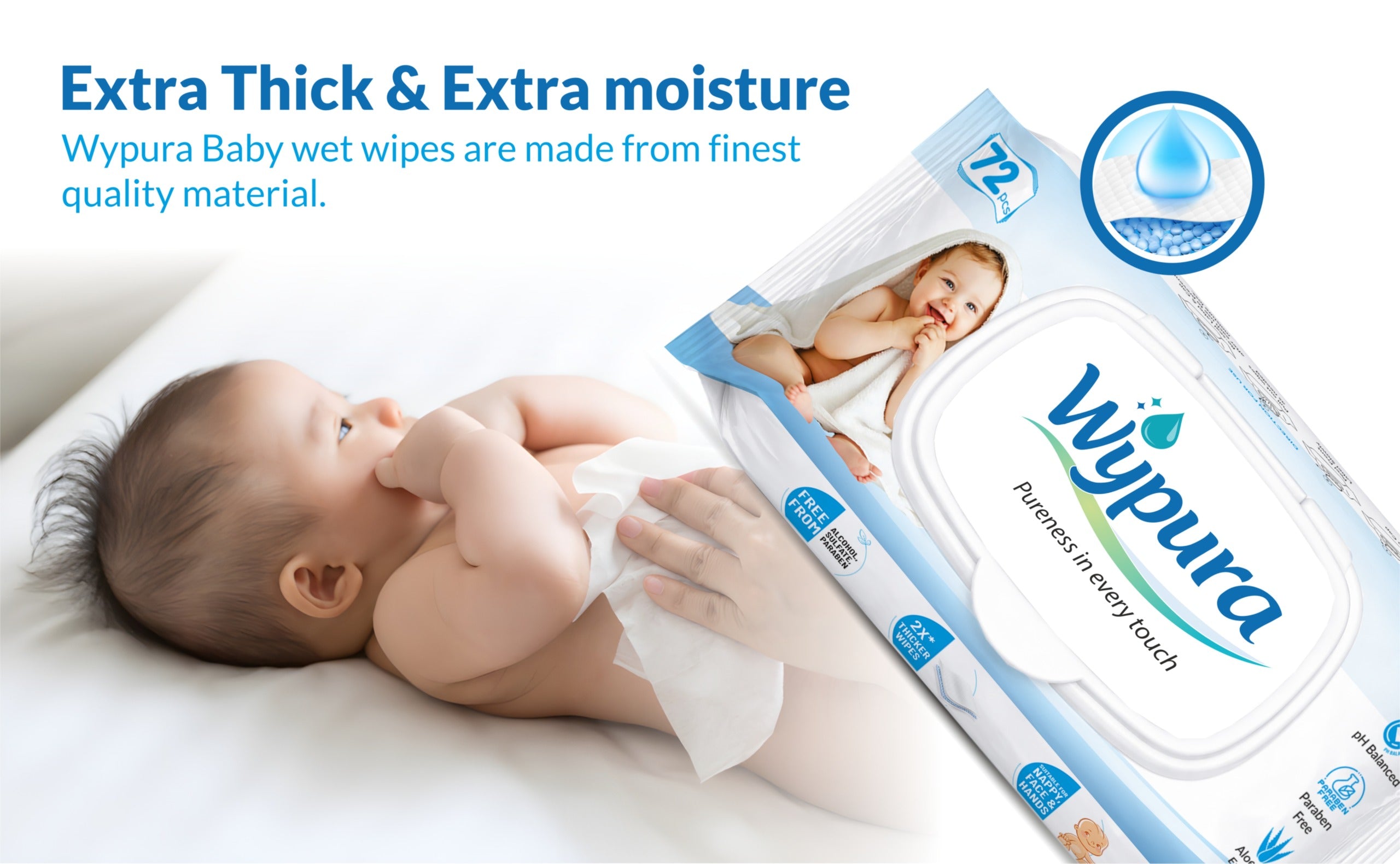 Baby wipes that are free from fragrances, and harmful chemicals, and are made with safe ingredients are best for a baby. If you want a durable and gentle material to properly cleanse your munchkin, try Wypura 99% Pure Water Unscented Baby Wipes. They are as good as cotton & water on their delicate skin.
